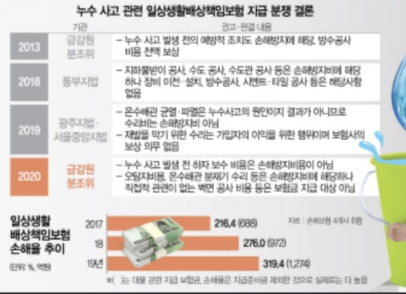 생활배상책임보험은 아랫집 누수문제를 간단하게 해결(일회성보험)